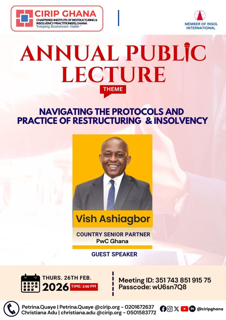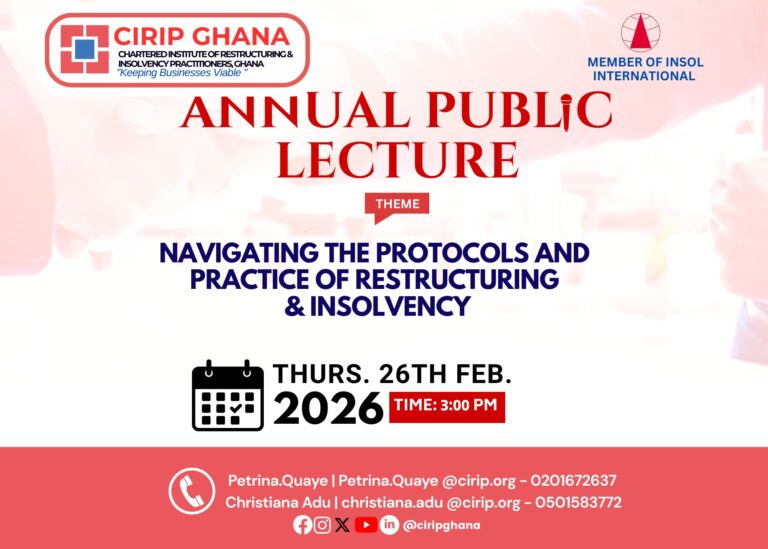 NOTICE IS HEREBY GIVEN that the 1st Annual General Meeting of the Chartered Institute of Restructuring and Insolvency Practitioners, Ghana will be held on Wednesday, 3rd December 2025 at 2:00PM in the afternoon at the Palms by Eagles Airport City, Formerly Holiday Inn and Online Microsoft Teams to transact the following business: AGENDA To receive […]